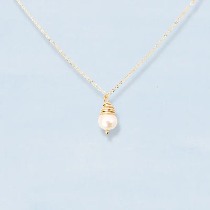 Simple Gold Wrapped Pearl Necklace